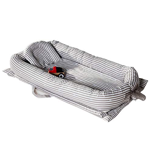 - 軽量で目的や用途に合わせて持ち運びができるクッションのようなベビーベッド。