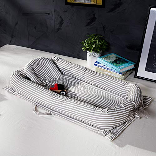 YideaHome ベッドインベッド ベビーベッド ベッドガード 添い寝ベッド 持ち運びに便利 新生児用 ベビーベッド ベッドマット 枕付き 折り畳み式 おむつ換え (グレー)