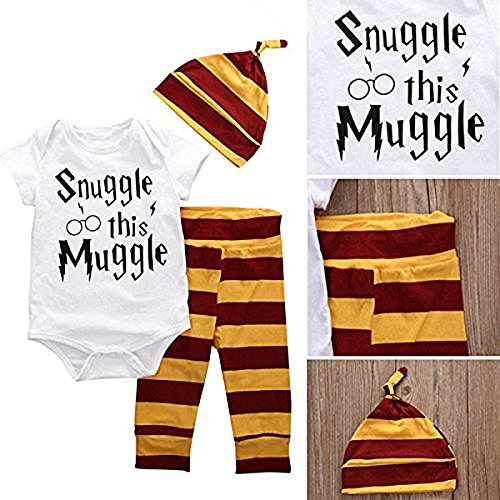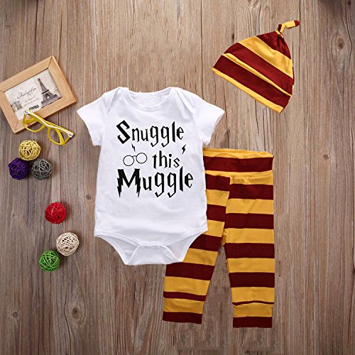 YideaHome 子供服 ベビー服 ジャンプスーツ+帽子+パンツ 上下 3点セット 赤ちゃん 男女共用 幼児服 可愛い パジャマ 寝間着