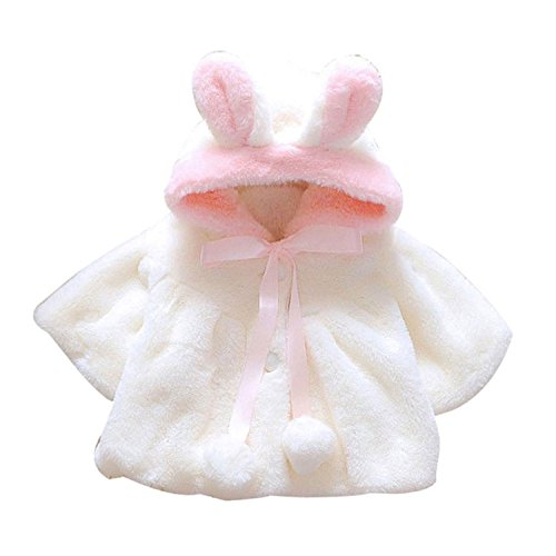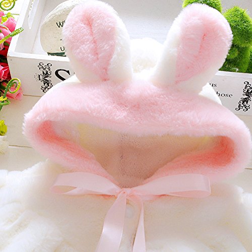 YideaHome子供ケープ 子供ドレス フード付き 防寒 ベビー服 女の子 ふわふわ 暖かい アウターウェア ソフトコート ホワイト ピンク ウサギ