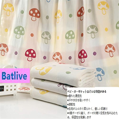 6重ガーゼ ベビーケット ひざ掛け 通気性 保温性 優しい肌触り 出産祝いやギフトにもおすすめです 110x115cm (キノコ)