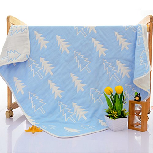 6重ガーゼ ベビーケット ひざ掛け 通気性 保温性 ふわふわガーゼタオル 子供バスタオル キッズ用ブランケット 110x110cm 木 ブルー