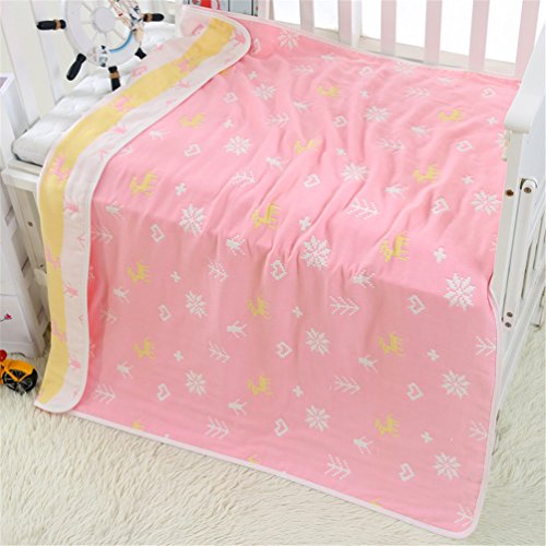 6重ガーゼ ベビーケット 湯上りタオル ひざ掛け 通気性 保温性 優しい肌触り キッズ用ブランケット 毛布 110×110cm (Deer, Pink)