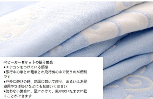 6重ガーゼ ベビーケット 湯上りタオル ひざ掛け 通気性 保温性 優しい肌触り キッズ用ブランケット 毛布 110×110cm (Monkey, Blue)