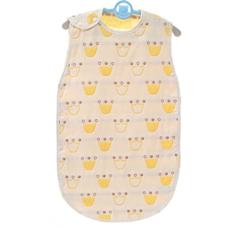 6重より柔らか パジャマ ベビー オーガニックコットン 赤ちゃん ボタン開閉式 肌触り抜群 寝袋 40*70 cm クラウン柄 イエロー