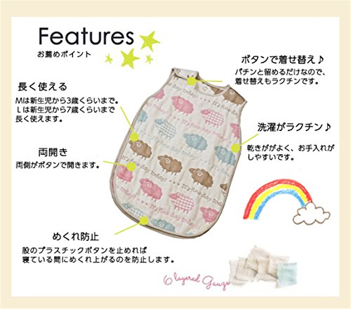 8重ガーゼ 肌触り抜群 スリーパー めくれ防止 ボタン開閉式 寝袋 40*60 cm 動物園