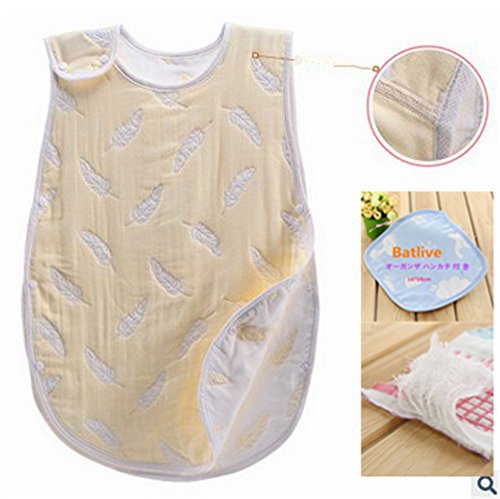 6重ガーゼ 高品質 ふわふわ 肌触り抜群 スリーパー めくれ防止 ボタン開閉式 寝袋 フェザー イエロー 40*70 cm