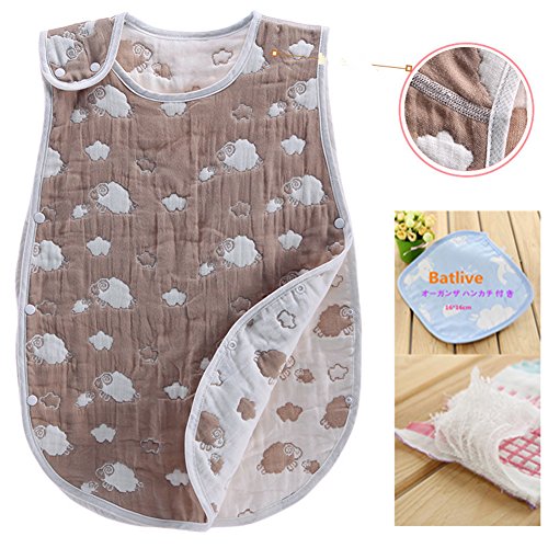 6重ガーゼ 高品質 ふわふわ 肌触り抜群 スリーパー めくれ防止 ボタン開閉式 寝袋 羊 褐色 40*60 cm