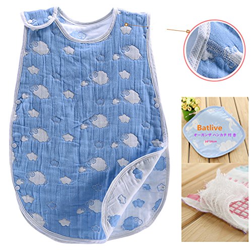 6重ガーゼ 高品質 ふわふわ 肌触り抜群 スリーパー めくれ防止 ボタン開閉式 寝袋 羊 ブルー 40*70 cm