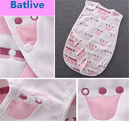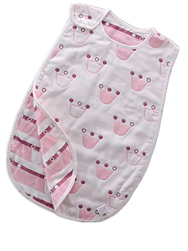 6重ガーゼ スリーパー ベビー パジャマ ふわふわ コットン 柔らかい 綿 ボタン開閉式 寝袋 42*70 cm クラウン柄 ピンク
