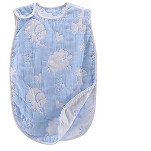 6重ガーゼ ベビー スリーパー 寝袋 オーガニックコットン オールシーズン パジャマキッズ(適応身長70cm-120cm) 象さんブルー