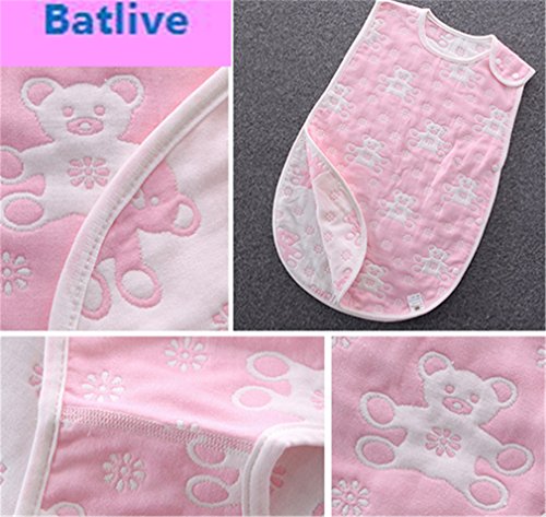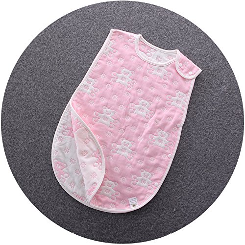 6重ガーゼ スリーパー ベビー パジャマ ふわふわ コットン 柔らかい 綿 ボタン開閉式 寝袋 42*70 cm ベア ピンク