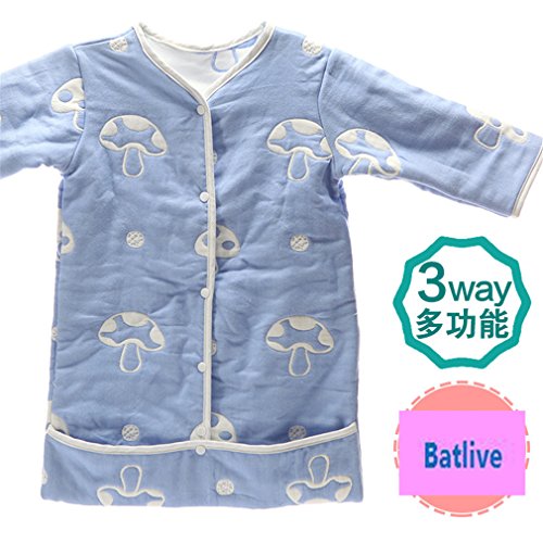 スリーパー ベビー ジュニア 3way 6重ガーゼスリーパー サロペット ガウン 寝巻き ベスト ベビーウエア 出産祝い 誕生日 70 cm キノコ ブルー