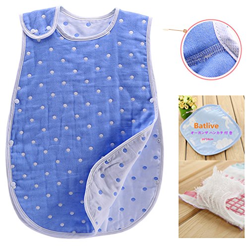 6重ガーゼ 高品質 ふわふわ 肌触り抜群 スリーパー めくれ防止 ボタン開閉式 寝袋 水玉 ブルー 45*80 cm
