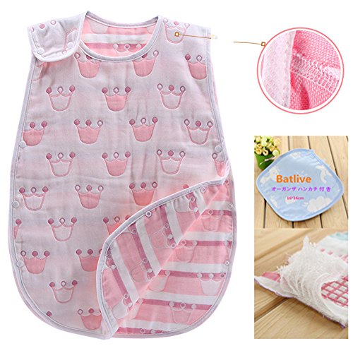 6重ガーゼ 高品質 ふわふわ 肌触り抜群 スリーパー めくれ防止 ボタン開閉式 寝袋 クラウン柄 ピンク 45*80 cm