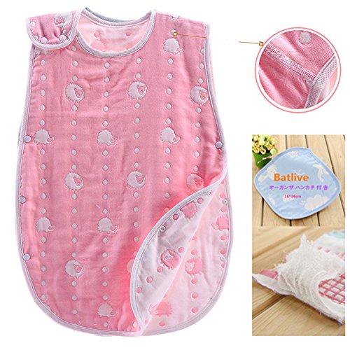 6重ガーゼ 高品質 ふわふわ 肌触り抜群 スリーパー めくれ防止 ボタン開閉式 寝袋 ヘッジホッグ ピンク 40*60 cm