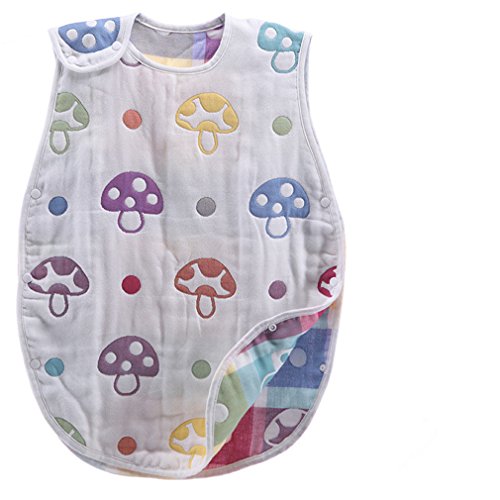 6重ガーゼ ベビー スリーパー 寝袋 オーガニックコットン オールシーズン パジャマキッズ(適応身長70cm-120cm) キノコ