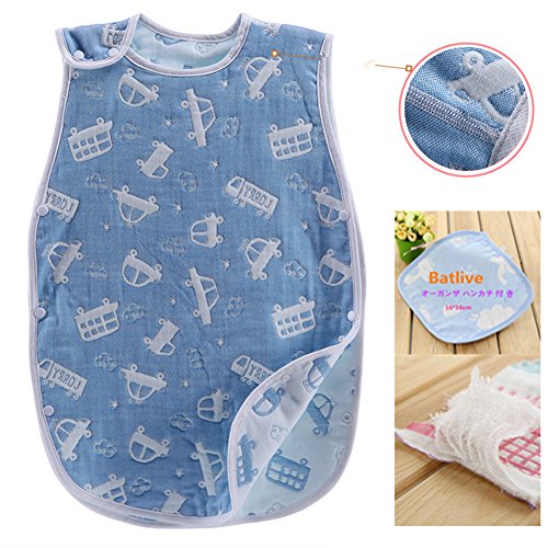6重ガーゼ 高品質 ふわふわ 肌触り抜群 スリーパー めくれ防止 ボタン開閉式 寝袋 車 ブルー 45*80 cm