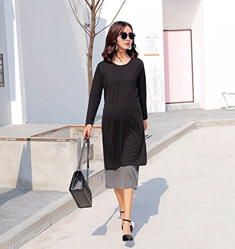 Yinuo Baby マタニティ レディース 長袖 授乳口 美ライン セーター ロング ストレッチ 秋 2セット (L, ブラック)