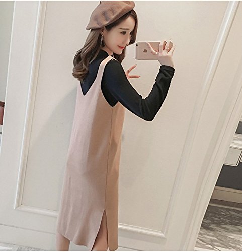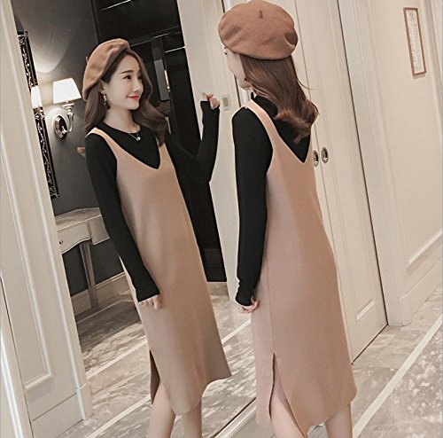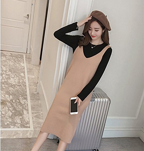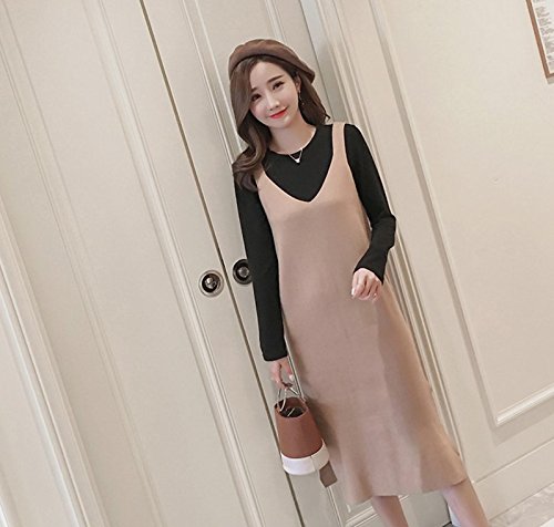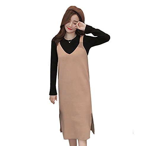 Yinuo Baby マタニティ レディース 長袖 美ライン セーター ロング ストレッチ 秋 2セット (XL, カ—キ色)