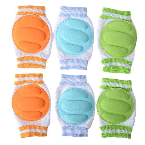 #1 Premium Quality; Material:80% cotton,18% Dacron and 2% Spandex; Quality Guarantee!;Size:circumference approx 15cm/5.9 inch(unstretched); overall size 13.5cm/5.3 inchx 7cm/2.8 inch (LxW);round pad (in the middle) diameter 7.5cm/3 inch;Protect little darlings'knees from bruises and scrapes when they are curiously crawling;Durable, machine washable and dryer safe;Package include: 3 pairs(1 pair per color)