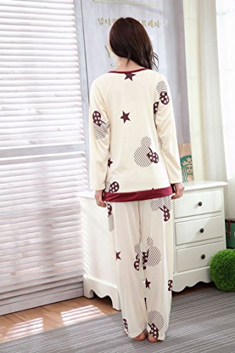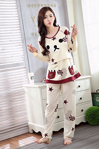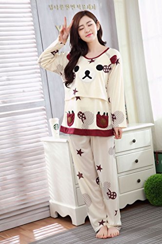 (Yland Select) 授乳 パジャマ マタニティ ルーム ウェア パンツ 妊婦 楽々 カジュアル プリント 授乳口 ゆったり サイズ 部屋着 服 入院 産前 産後 上下セット (M, ホワイト①)