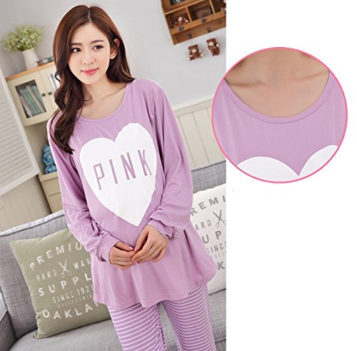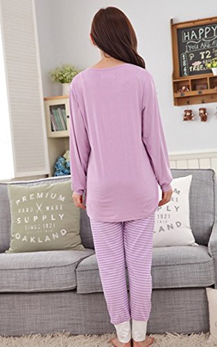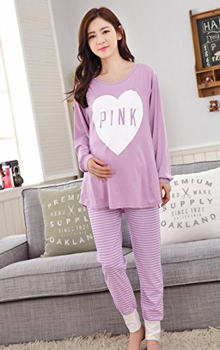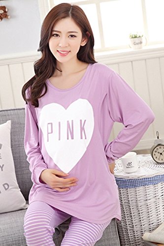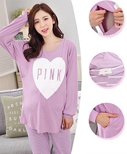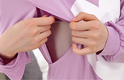 (Yland Select) 授乳 パジャマ マタニティ ルーム ウェア パンツ 妊婦 楽々 カジュアル プリント 授乳口 ゆったり サイズ 部屋着 服 入院 産前 産後 上下セット (M, パープル②)