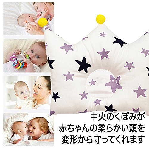 Ymgot ベビー ピロー 王冠 赤ちゃん 枕 新生児 ドーナツ型 絶壁防止 向き癖 ギフト 出産祝い (星柄 ホワイト)