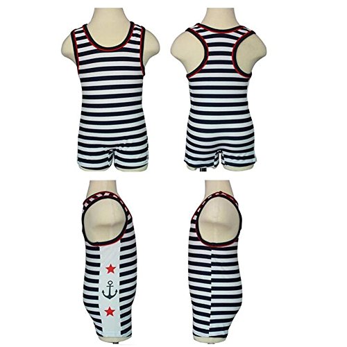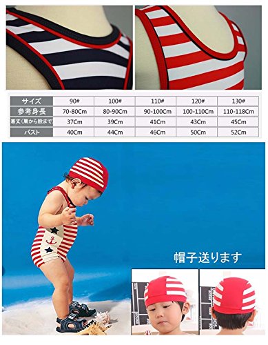 Ymgot ベビー 水着 男の子 ボーダー柄 子供 水着 キャップ付き 2点セット 90