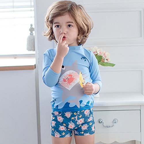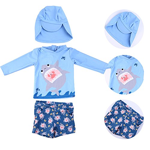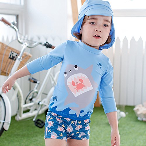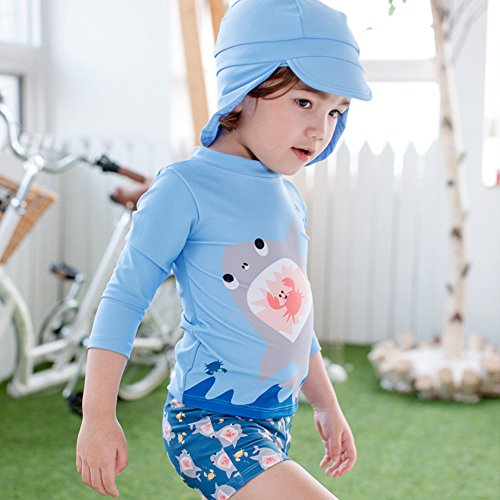 Ymgot ベビー 水着 男の子 サメ柄 ラッシュガード 3点セット キッズ 水着 セパレート スイムウェア (90(身長75cm-85cm))
