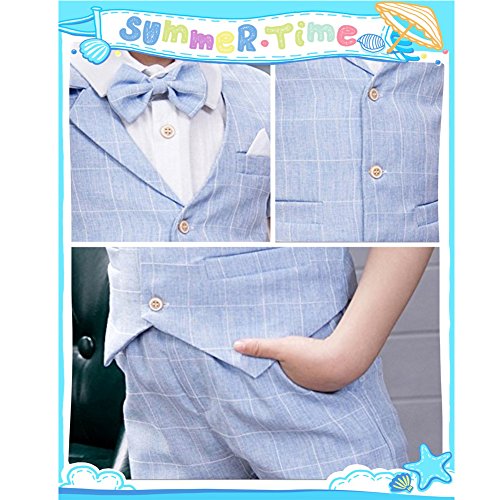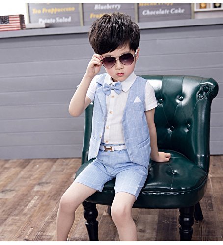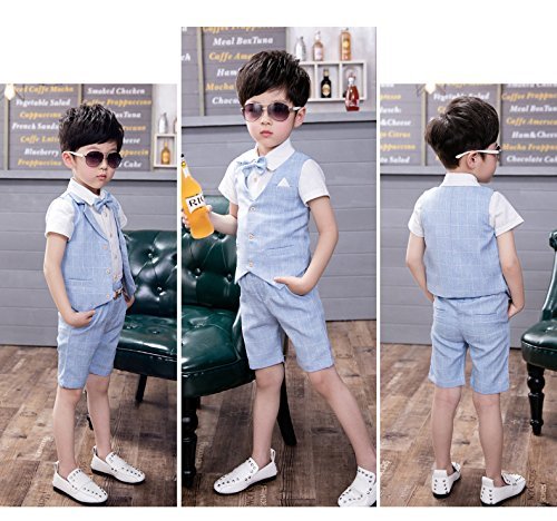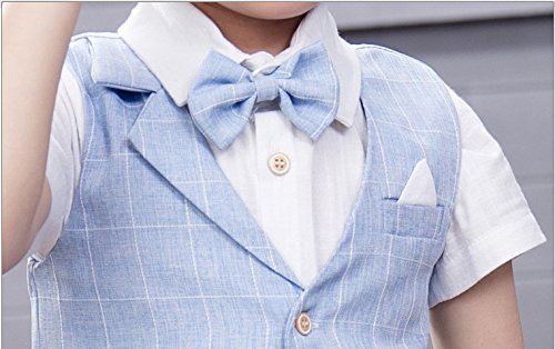 Ymgot 子供 キッズ フォーマル 男の子スーツ シャツ パンツ ベスト 蝶ネクタイ付き 4点セット結婚式 誕生日 パーティー 七五三 記念日 (90cm, ブルー)