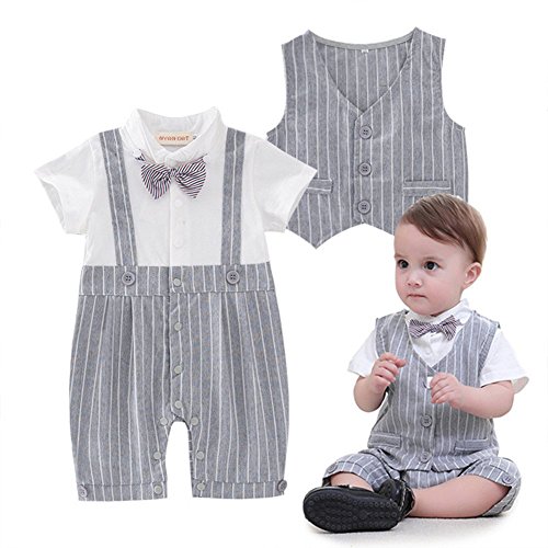 Ymgot ベビー ロンパース フォーマル 半袖 カバーオール 男の子 2点セット 出産祝い 入学 入園 卒業式 (70#(3-6ヶ月))