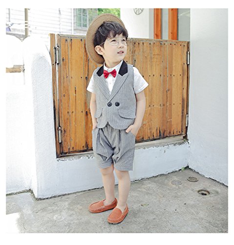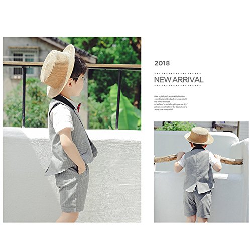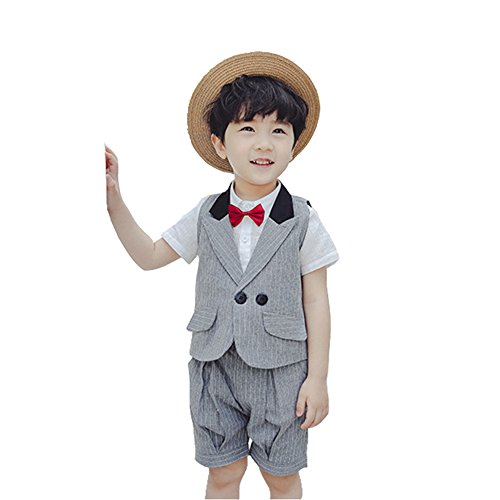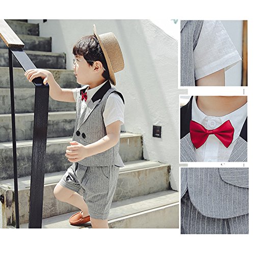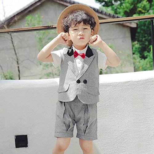 Ymgot 子供 フォーマル スーツ 男の子 半袖 ストタイプ柄 3点セット ベビー タキシード 結婚式 七五三 お宮参り パーティー (90cm, グレー)