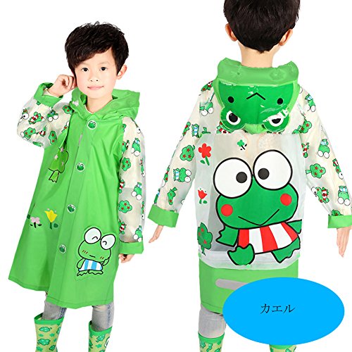 Ymgot キッズ レインコート 男の子 カッパ 雨具 子供 レインウェア ランドセル対応 小学生 通学 (S(90-105cm), カエル)