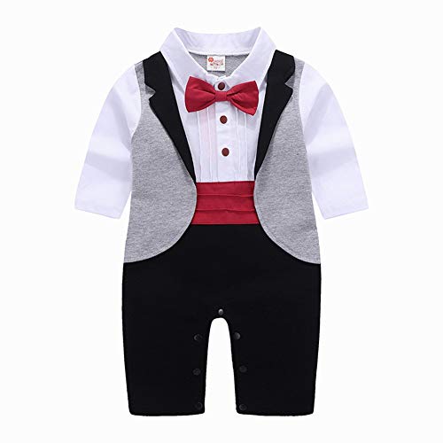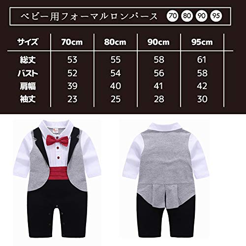Ymgot 赤ちゃん フォーマル ロンパース 男の子 長袖 タキシード風 カバーオール 紳士服 新生児 幼児 出産祝い 撮影 記念日 (95#(12-18ヶ月))