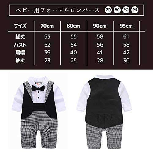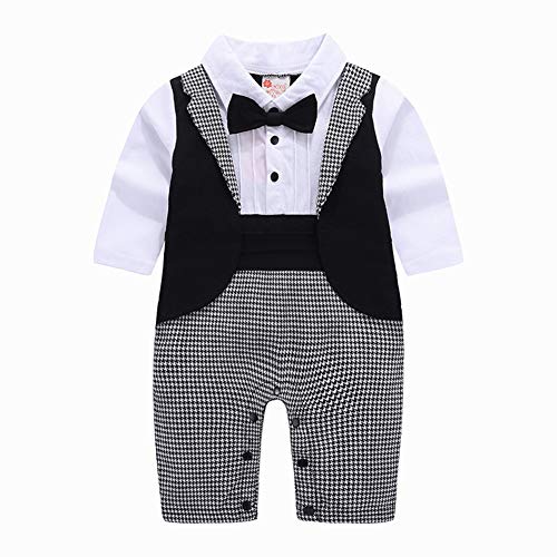 Ymgot ベビー フォーマル ロンパース 男の子 子供 タキシード カバーオール 長袖 千鳥柄 新生児 幼児 出産祝い 撮影 記念日 (95#(12-18ヶ月))