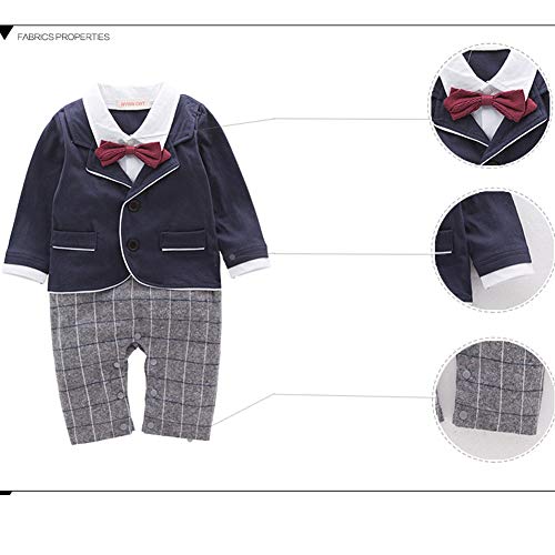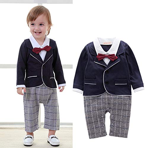 Ymgot ベビー フォーマル ロンパース 男の子 長袖 赤ちゃん カバーオール 新生児 幼児 出産祝い 撮影 記念日 (70cm)