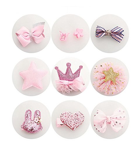 Ymgot ベビー ヘアピン ヘアクリップ 子供 髪飾り 10点セット 誕生日 出産祝い 結婚式 お宮参り プレゼント (ピンク)