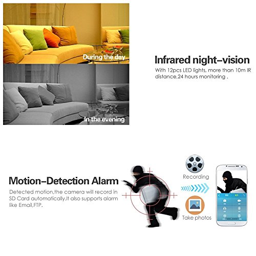 動体検知&警報通信機能:画面を変換する時、動体検知するとメールを送信すると共に、アプリ上も通知されます。外出中でも、家の状況を確認できるのであんしんです。アラーム設置可能、アプリやパソコンでアラームの設置をしたら、不審者が出たら、アラーム警告機能が起動し、リアルタイムで不審者の行動を見えます。