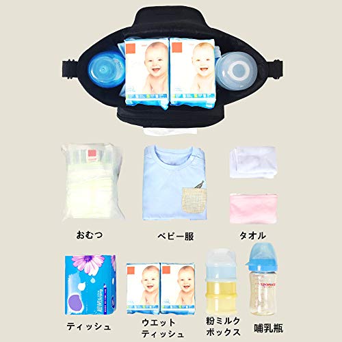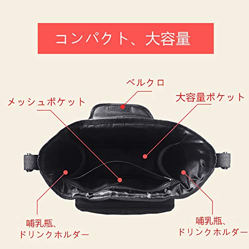 - 5【大容量収納ポケット】多い物が収納ことができます。例えば哺乳瓶、おむつ、唾液タオル、ウェットティッシュ、タオル、おもちゃなど。家族とベビーカーに一緒にハイキングにもっと快適で楽しい!