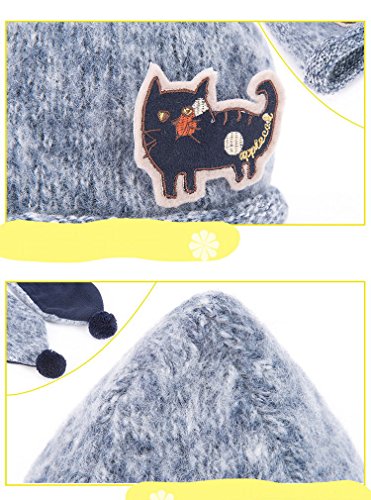 (よキーよ)Yokeeyo ニット帽子とマフラーのセット 肩まであたたかキャップ 赤ずきんちゃん風ストール 可愛い猫柄タグ付き 刺繍 とんがり帽子 赤ちゃん キッズ 男の子 女の子 男女児 秋冬 防寒 ケーブル編み