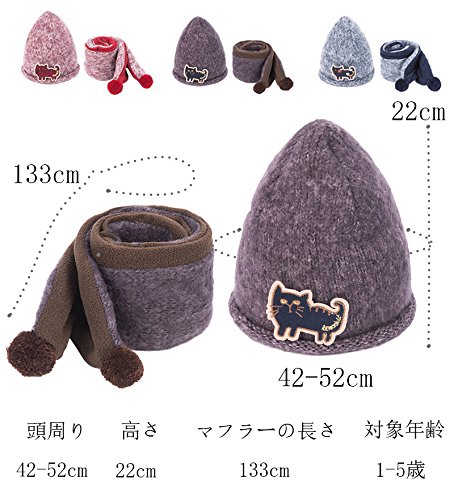 - サイズ(伸縮性あり):頭周り42-52cm 帽子の高さ:22cm マフラーの長さ:133cm 1-5歳の幼児におすすめ。被り心地が良くて誰でも似合う。