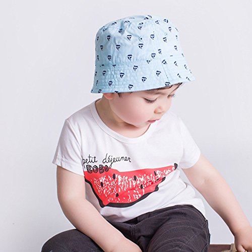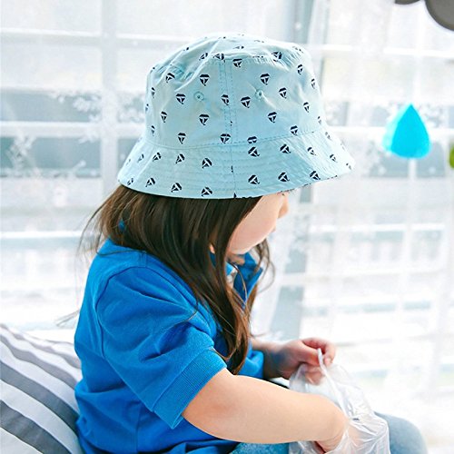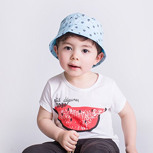 (よキーよ)Yokeeyoベビー用ハット つば広 赤ちゃんキャップ アウトドアハット キッズ 帽子 子供サンバイザー フィッシャーマンハット 帆船の模様 サックス 男の子 女の子 男女児 紫外線 UVカット 日よけ止め 日焼け防止
