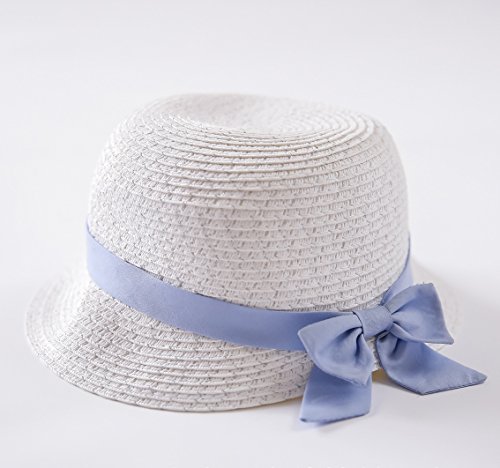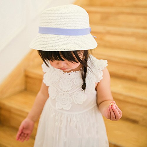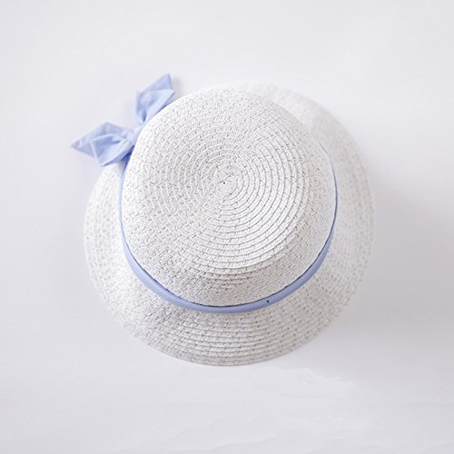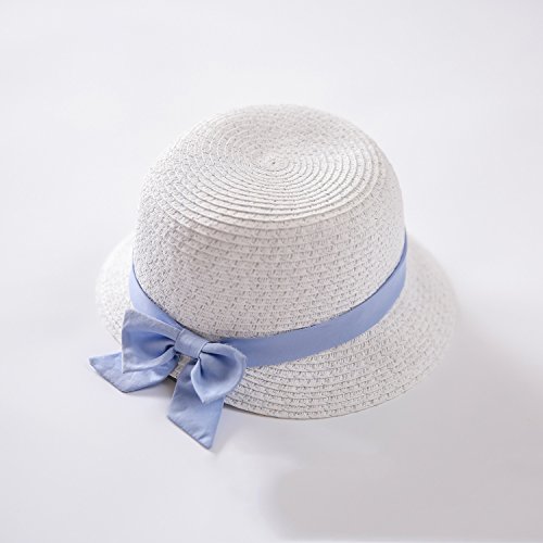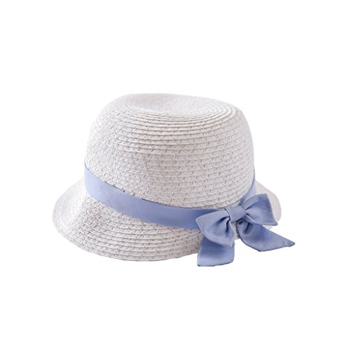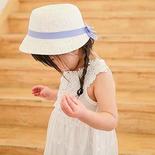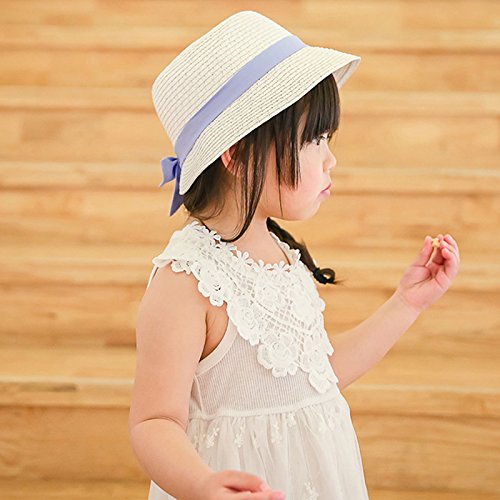 (よキーよ)Yokeeyoベビー用ハット 紐付き 白い麦わら帽子 ちょう結び リボン飾り 赤ちゃんキャップ アウトドアハット 男女児 紫外線 UVカット 日よけ止め 日焼け防止