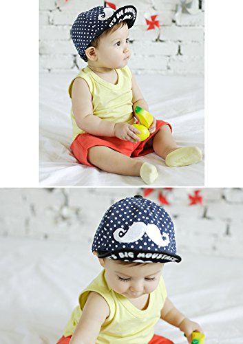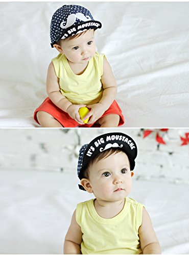 (よキーよ)Yokeeyo 帽子 キャップ 紐付き キッズ 赤ちゃん ベビー 子供野球帽子 ベースボールハット 通学 通園 かっこいい 女の子 男の子 つば広 ちょび髭柄 アウトドアハット 男女児 紫外線 UVカット 日よけ止め 日焼け防止