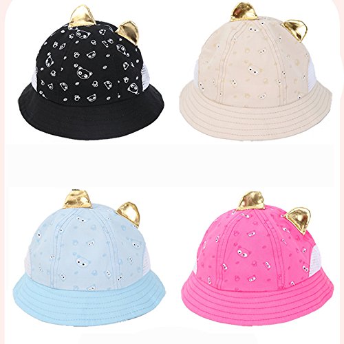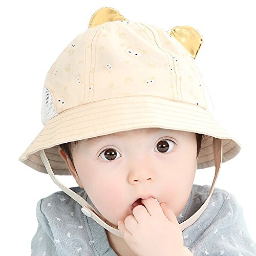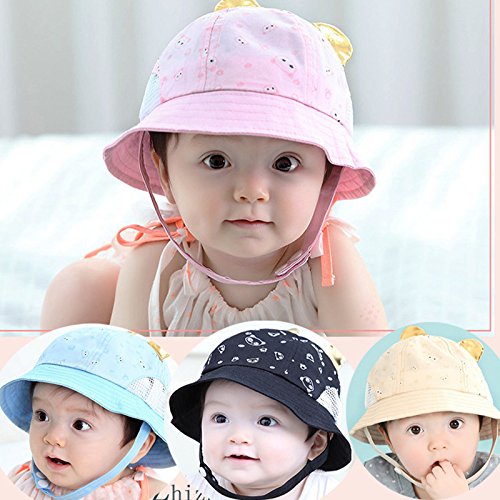 (よキーよ)Yokeeyoベビー用ハット 紐付き メッシュ 薄地 クマプリント 盆帽 刺繍 赤ちゃんキャップ アウトドア 男女児 紫外線 UVカット 日よけ止め 日焼け防止