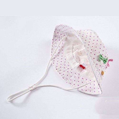 (よキーよ)Yokeeyoベビー用ハット 紐付き 水玉プリント ちょう結び リボン飾り つば広 フィッシャーマンハット 赤ちゃんキャップ アウトドアハット 男女児 紫外線 UVカット 日よけ止め 日焼け防止