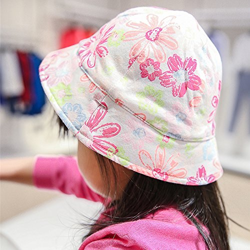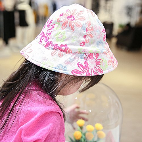 (よキーよ)Yokeeyoベビー用ハット つば広 赤ちゃんキャップ アウトドアハット キッズ 帽子 子供サンバイザー 盆帽 人気 刺繍 花柄 ライト色 女の子 紫外線 UVカット 日よけ止め 日焼け防止 (48)