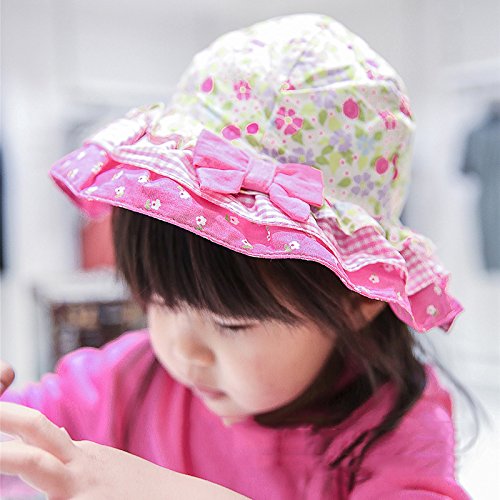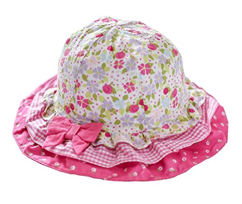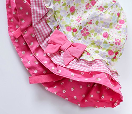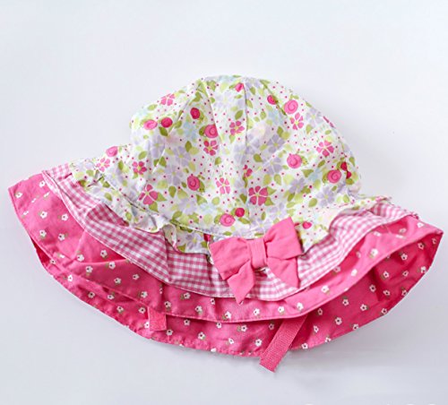 (よキーよ)Yokeeyoベビー用ハット 紐付き つば広 赤ちゃんキャップ 花柄 プリント リボン 刺繍 薄地 女の子 紫外線 UVカット 日よけ止め 日焼け防止 可愛い プリンセス風