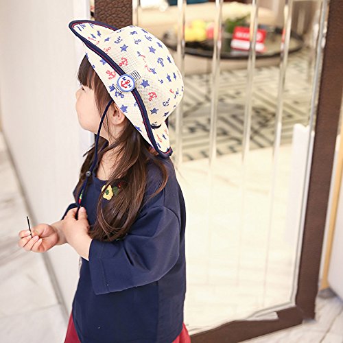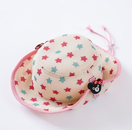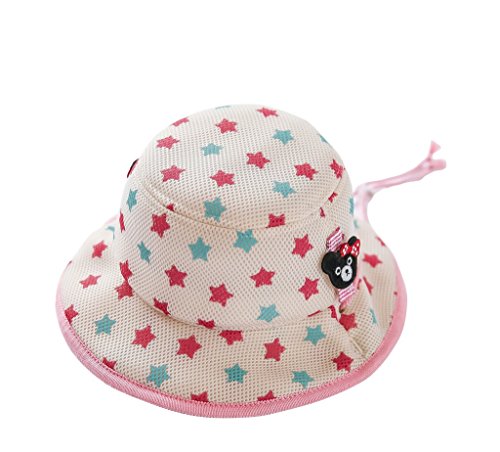 (よキーよ)Yokeeyoベビー用ハット 紐付き 盆帽 つば広 赤ちゃんキャップ メッシュ 通気性のいい 星のプリント 女の子 男の子 男女通用 紫外線 UVカット 日よけ止め 日焼け防止